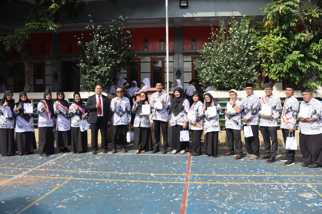 Perayaan dimulai dengan upacara resmi yang diikuti oleh seluruh siswa, guru, dan staf sekolah. Dalam upacara tersebut, pimpinan sekolah menyampaikan apresiasi mendalam kepada para guru atas dedikasi, komitmen, dan kerja keras yang terus mereka tunjukkan, terlebih dalam menghadapi tantangan pendidikan yang terus berkembang.